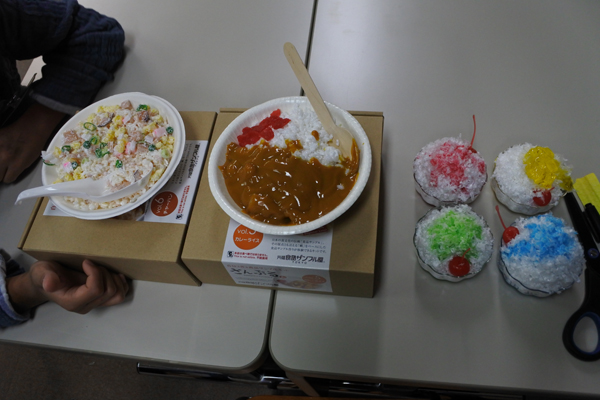 大正時代以来の歴史を持つマハヤナ学園撫子園の児童たちと共に、午前中は食品サンプルのカレーとチャーハン、かき氷の作成に勤しみました。