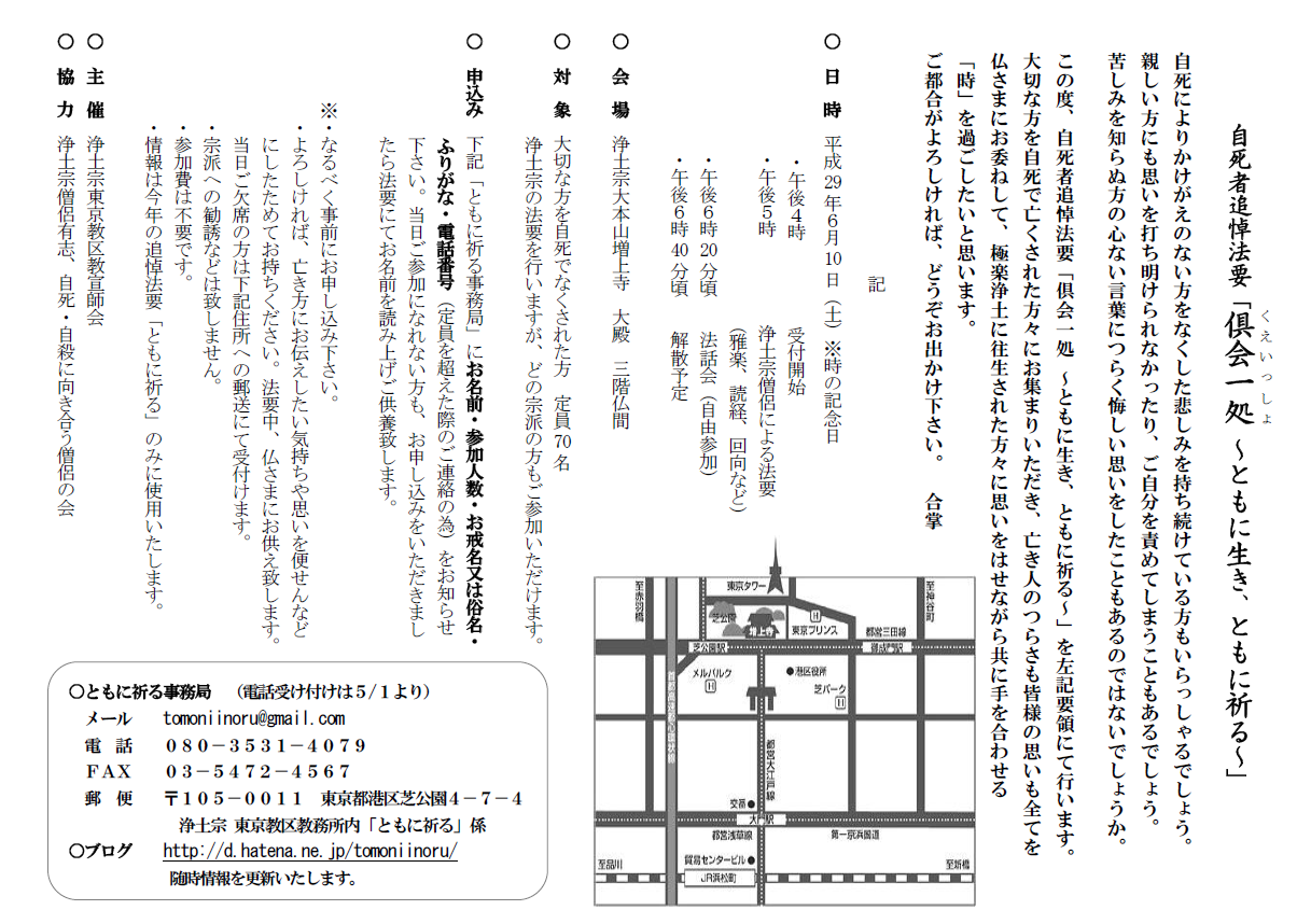 「自死者追悼法要~ともに生き、ともに祈る」が本年も開催の運びとなりました。