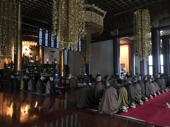 増上寺で一番大きく勇壮なお堂の大殿に多くの青年僧が集うさまは壮観です。