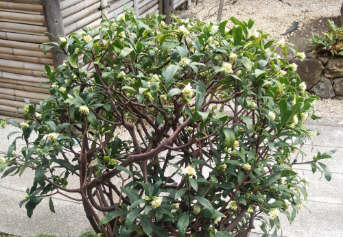 当山寺庭の沈丁花がほころび始めました。お見舞い代わりになれば良いのですが。